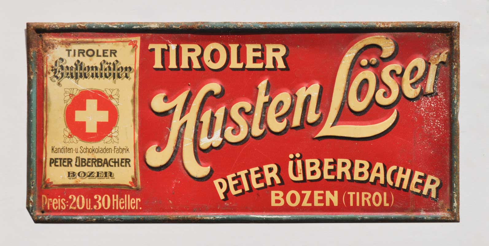 Anonym/Anonimo – Insegna pubblicitaria sTiroler Hustenlöser Peter Überbacher Bozens, 1915 ca.