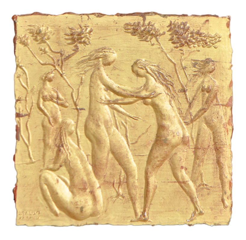 Rilievo in gesso, dorato, 38,5 x 39 cm, in cornice
