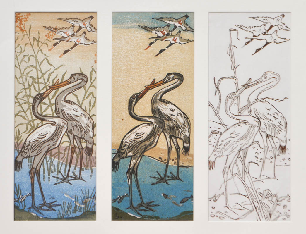Xilografie a colori – 3 stati, 28 x 11 cm ciascuna, in