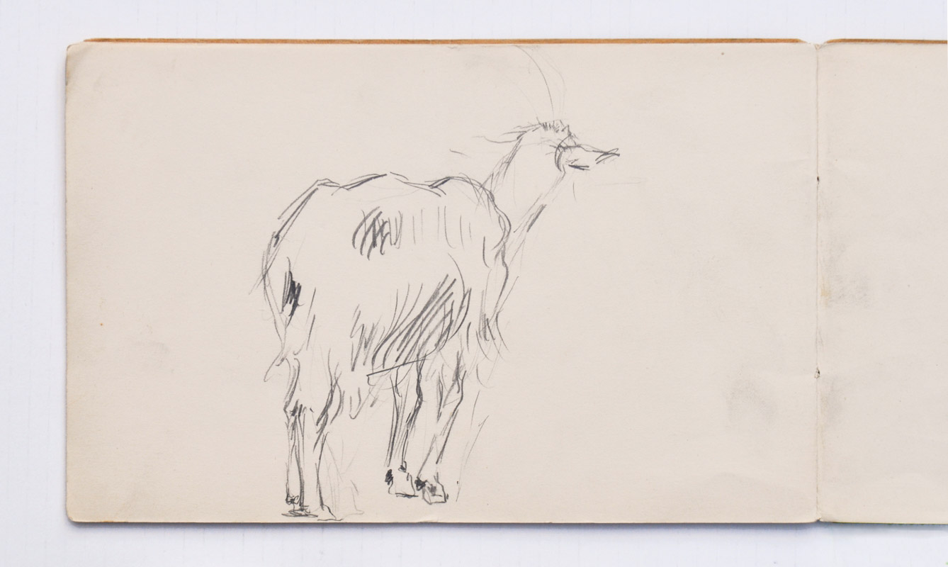 8 fogli con copertina, 7 schizzi di disegni a matita,