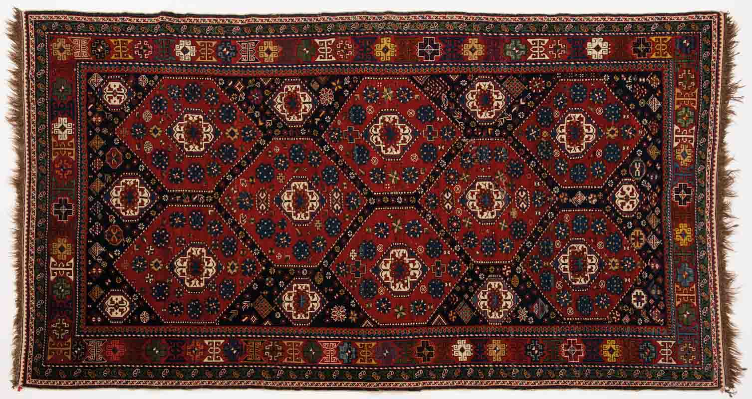 su tinta rossa, decorazione con medaglioni rettangolari.