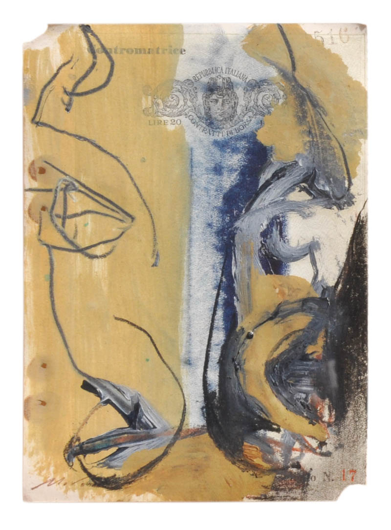 Tecnica mista su carta, 15 x 11 cm, al retro dedica ad personam