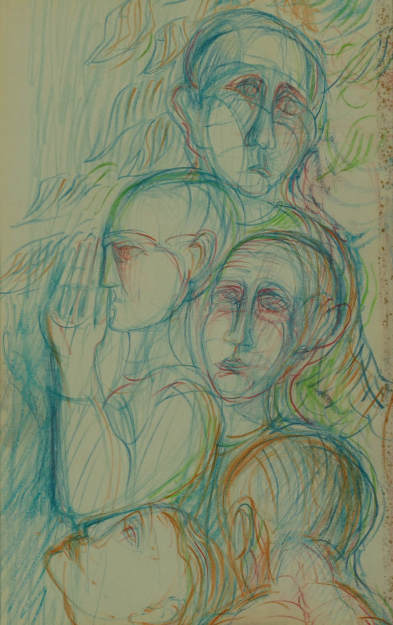 Matite colorate su carta, 19 x 12,5 cm, in cornice