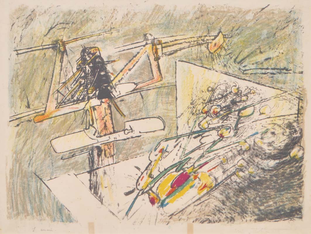 Litografia a col. su carta, 45 x 60 cm, segni di vecchio adesivo