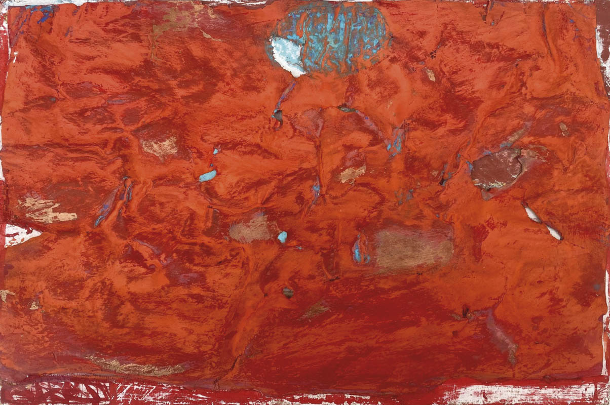 Tecnica mista su carta, su garza, su tela. 40 x 60 cm, al retro etichetta e timbro della galleria Meta, Bolzano