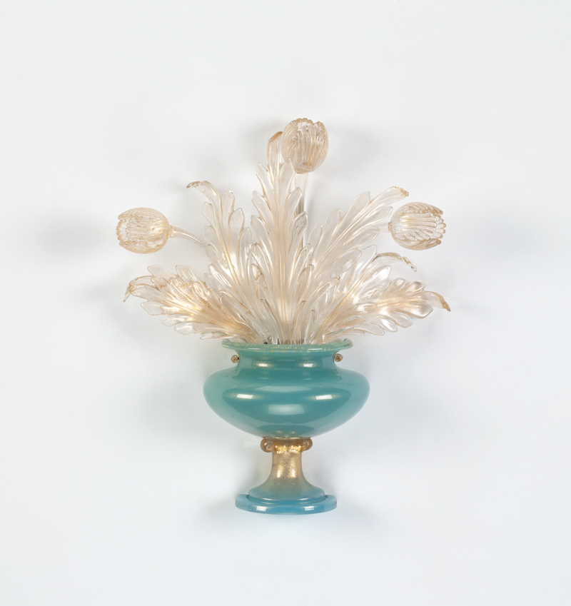 Cosidetta a “nido d’amore”, base in vetro color azzurro/oro,