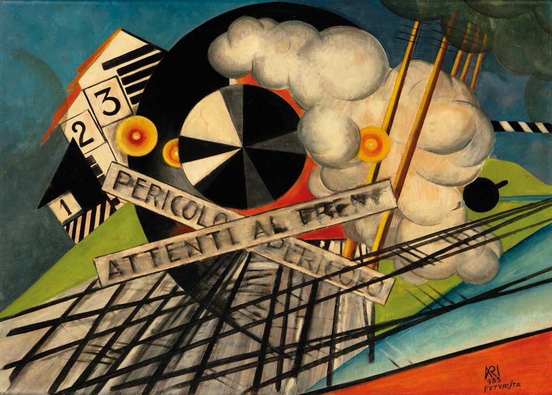 Il dipinto dal titolo Passaggio a livello, firmato “ARI 933 FUTURISTA”